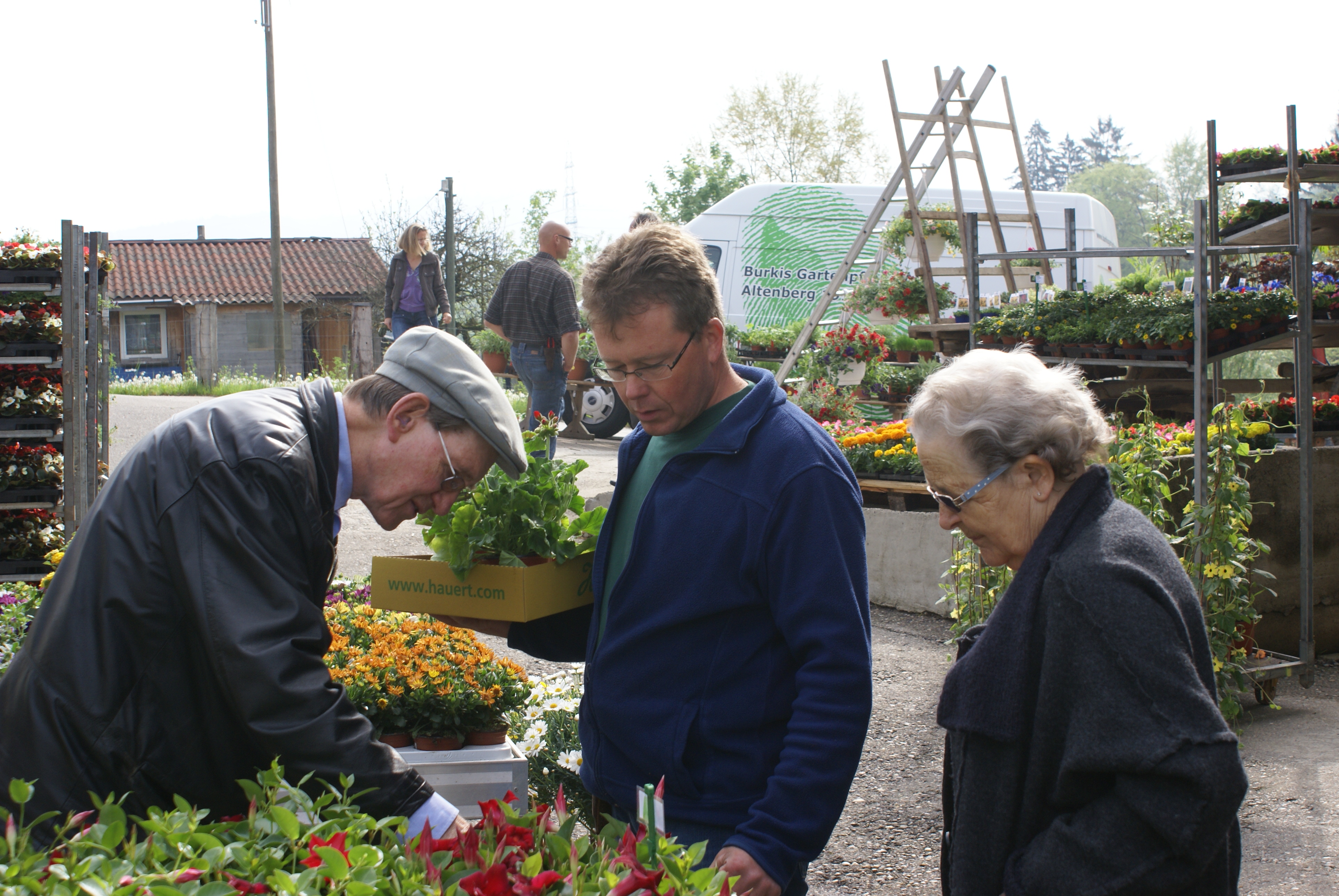 Nach dem Erfolg von letztem Jahr war für uns schnell klar, dass wir unseren diesjährigen Anlass unter dem Motto „Burkis Pflanzentage 2010“ stellen möchten. Das Wetter meint es nicht so gut, die Eisheiligen machen ihrem Namen alle Ehre. Aber wir dürfen zufrieden sein, dass es am Samstag 9. Mai 2010 „nur“ kalt, dafür trocken war. Wir haben uns gefreut, sind doch viele Kunden unserer Einladung gefolgt und haben uns besucht. Neu in diesem Jahr ist, dass man die Blumenkisten bei uns direkt bepflanzen lassen kann und wir den Pflanzenverkauf noch auf die folgende Woche jeweils morgens ausgedehnt haben.